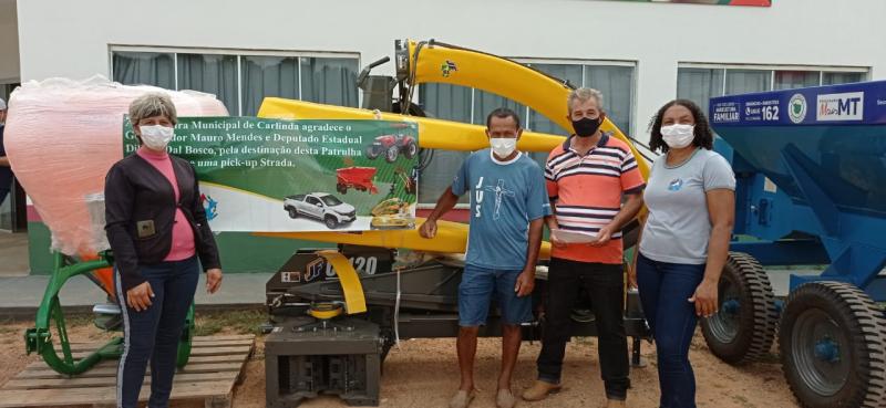 Nessa sexta-feira (22) foi realidade entrega de equipamentos agrícolas, alcançados por meio do Deputado Estadual Dilmar Dal Bosco, e pelo Governador do Estado Mauro Mendes, como também por meio de recursos próprios do município.